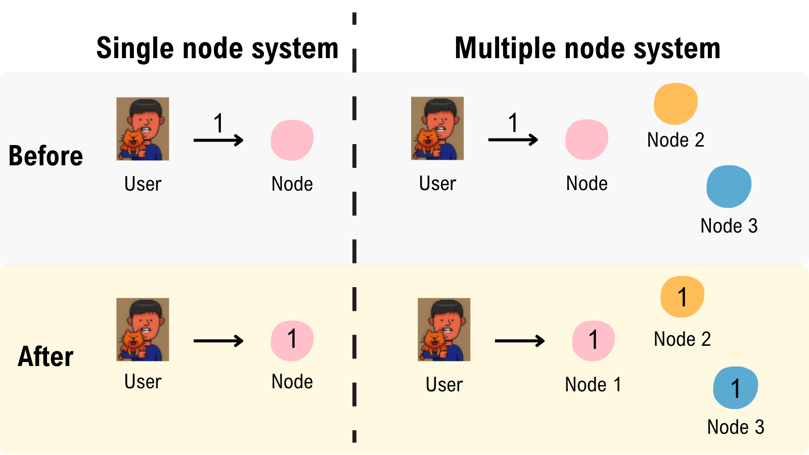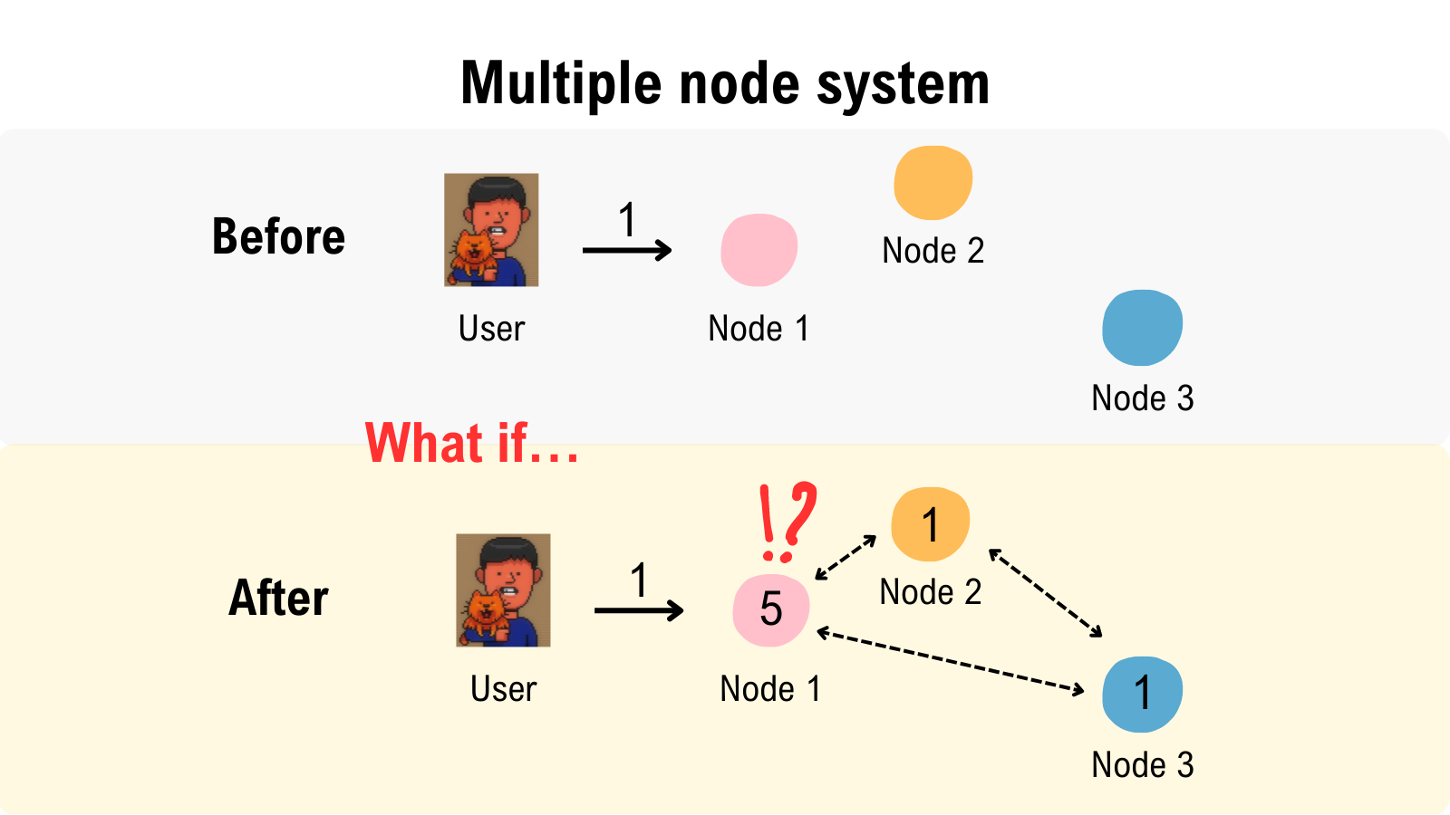 Imagine a blockchain as a database server that only stores a single number. Whenever a user sends a number to it, it will update the value after the majority of the node come to an agreement (Read: Consensus).